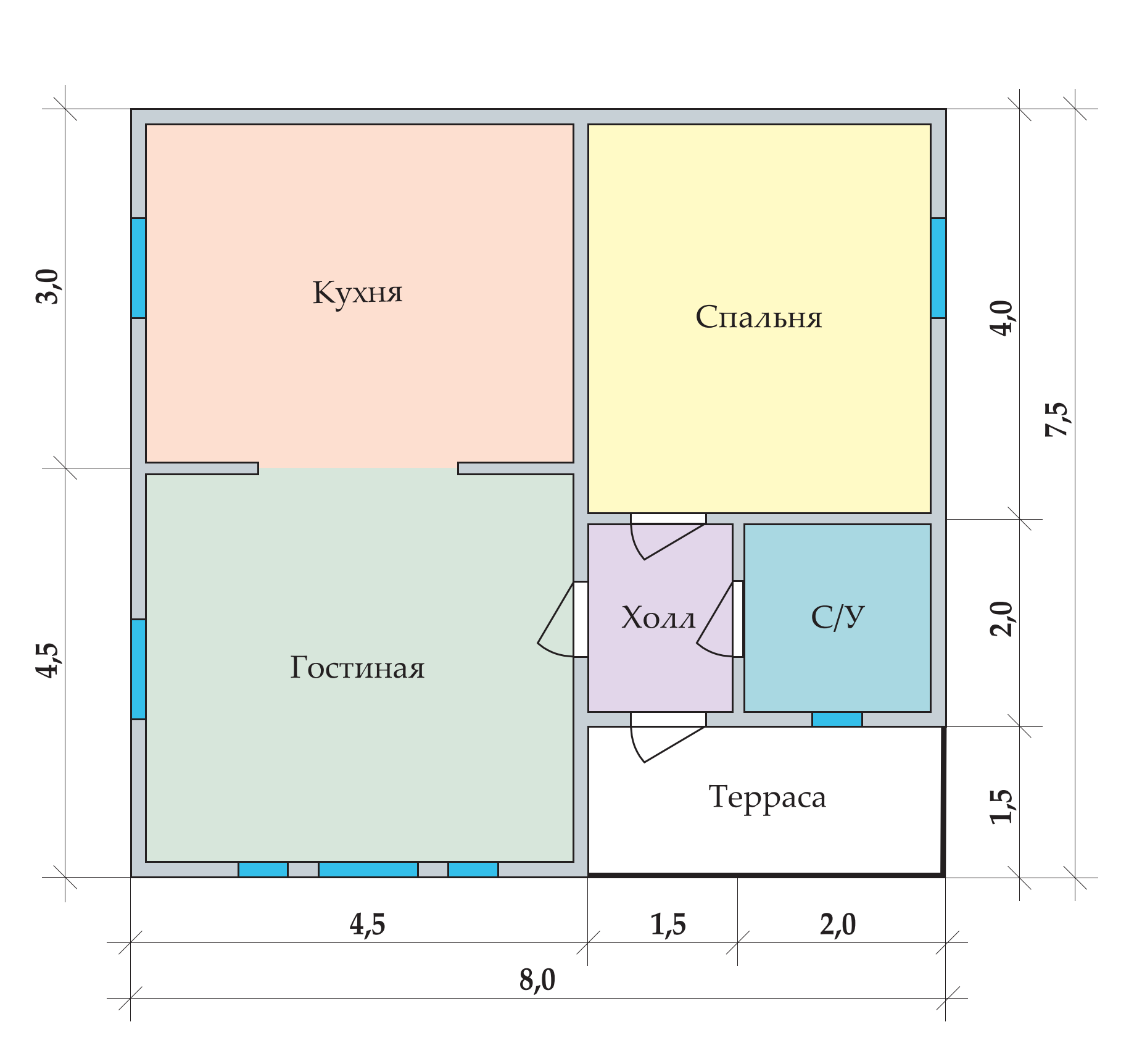 Стильный коттедж «Заря 7,5х8» станет прекрасным вариантом для тех, кто ищет уютное и компактное решение для комфортной загородной жизни.